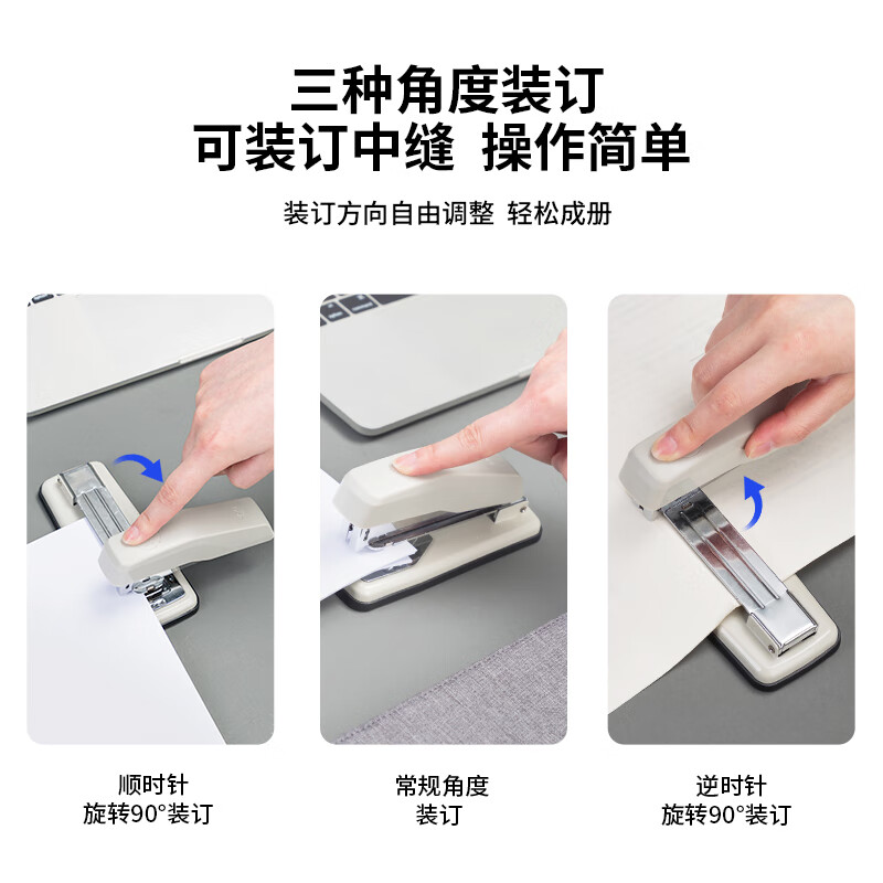 得力(deli)【超级爆款】12#50页旋转式订书机 厚层订书器 中缝临时装订可拆 办公用品 灰色0414S