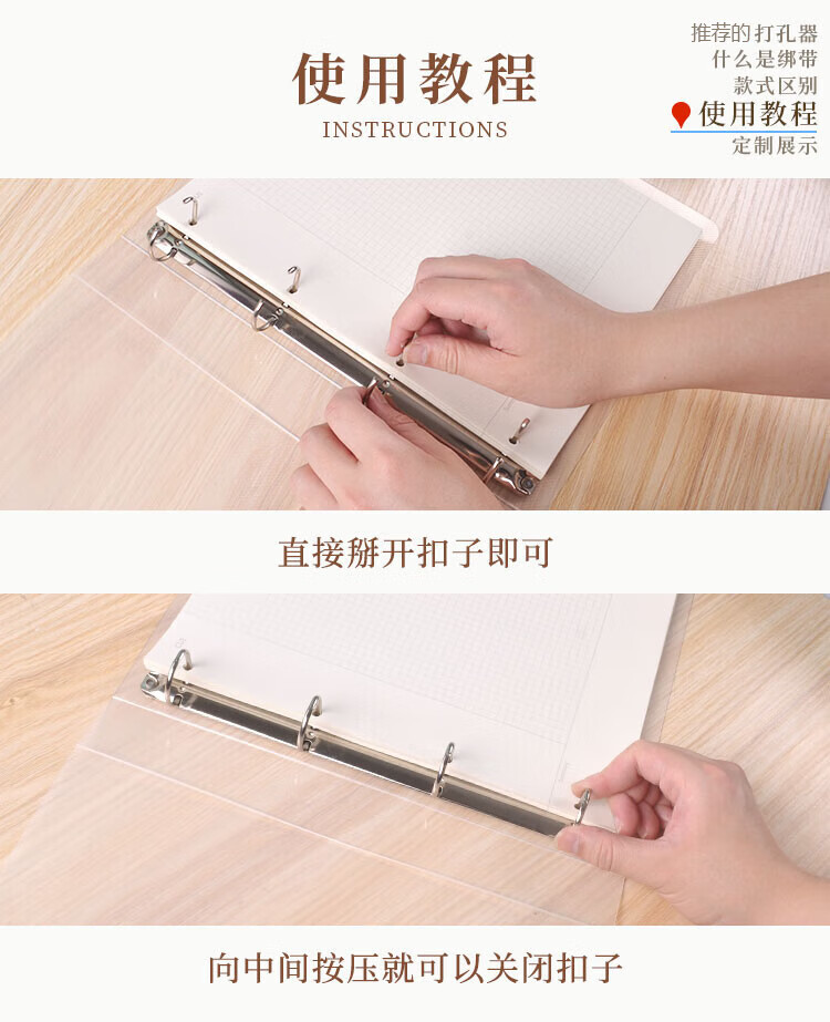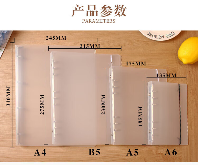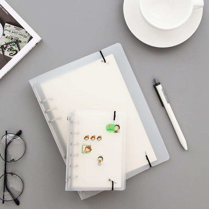 2021磨砂文件夹PP外壳A4A5加大活页夹打孔手账本定制印刷LOGO B5 2孔 PP壳透明磨砂有绑带 可装