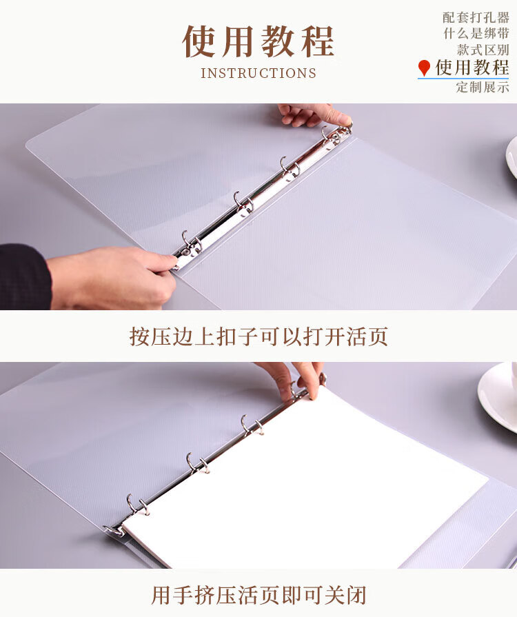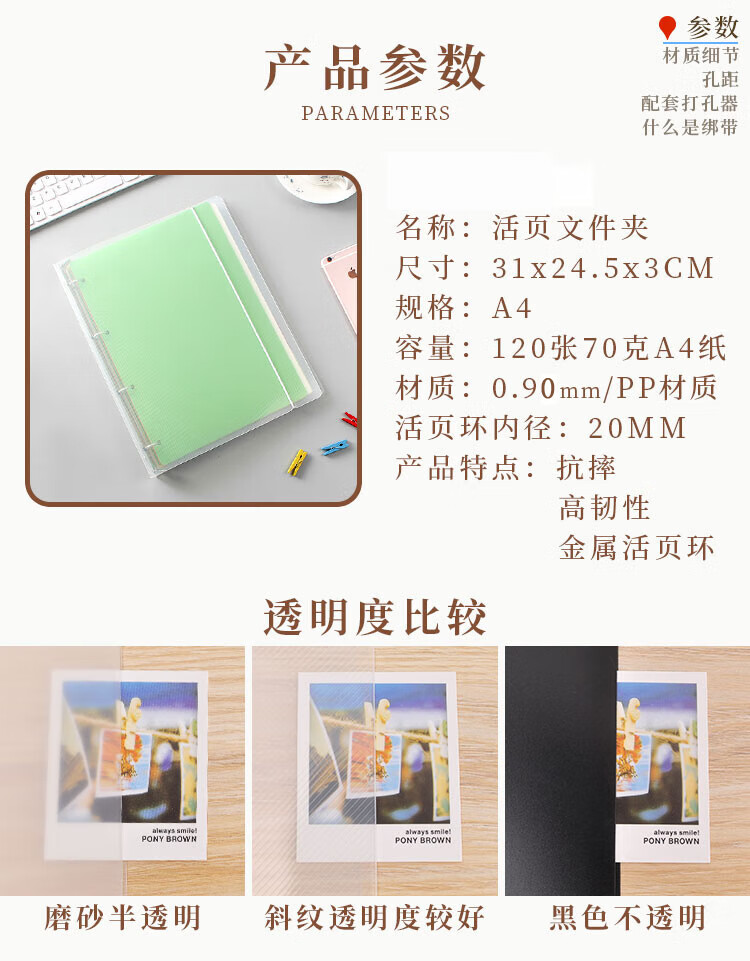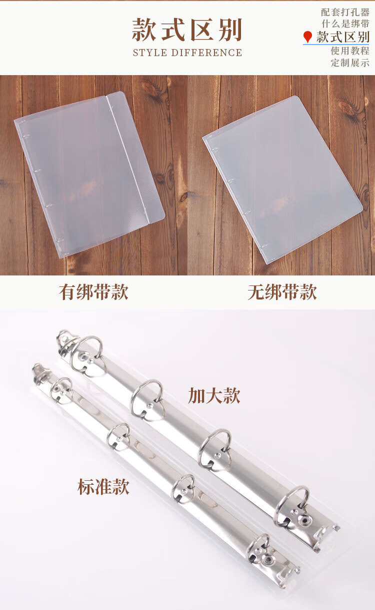 2021磨砂文件夹PP外壳A4A5加大活页夹打孔手账本定制印刷LOGO A4 4孔 PP壳透明磨砂有绑带 可